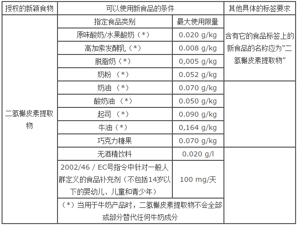 歐盟發(fā)布二氫槲皮素提取物作為新食品成分用于奶油等食品中的限量和標(biāo)簽要求