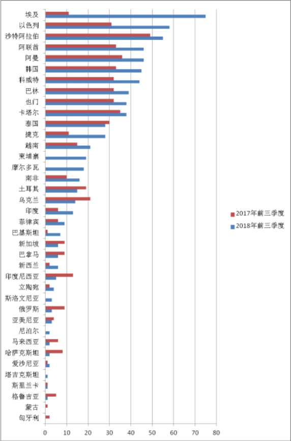 圖8 2018年前三季度RASFF通報中國食品的國家分布