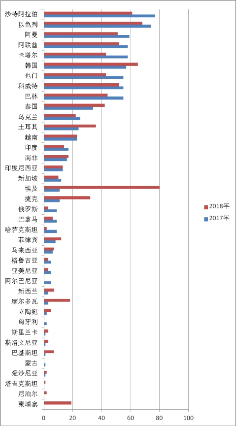 圖1 2017年和2018年一帶一路國家通報數(shù)比對