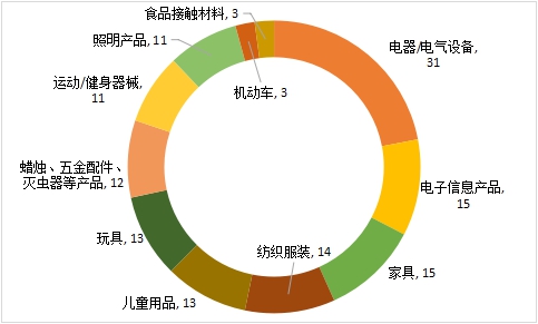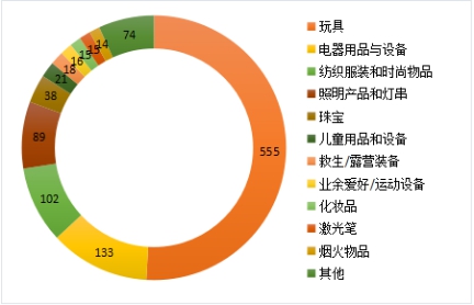 圖2 2018年美國CPSC召回中國出口消費品的類別分布