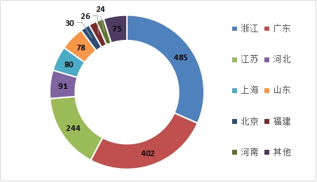除針對農(nóng)食產(chǎn)品進行監(jiān)管外,F(xiàn)DA還重點對進口醫(yī)療產(chǎn)品進行監(jiān)管。2018年FDA共通報拒絕進口醫(yī)療產(chǎn)品6704批次,占FDA總通報數(shù)的46.2%。其中,中國被FDA拒絕進口的醫(yī)療產(chǎn)品共1535批次(醫(yī)藥品258批次、醫(yī)療器械1277批次),占FDA拒絕進口醫(yī)療產(chǎn)品的22.9%。浙江、廣東和江蘇出口美國的醫(yī)療產(chǎn)品被FDA拒絕進口最多,分別為485、402和244批次(見圖6)。