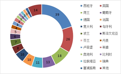圖4 2018年歐盟RAPEX召回中國消費品的國家分布