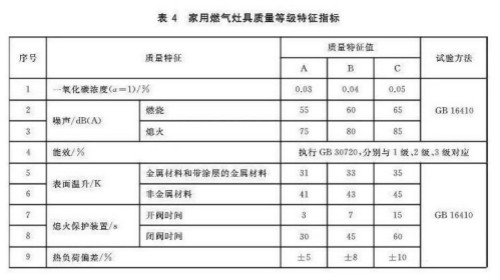 標(biāo)準(zhǔn)列出了具體產(chǎn)品如家用燃?xì)庠罹?、燃?xì)鉄崴鞯鹊馁|(zhì)量等級特征指標(biāo)。